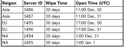Happy new year! We are going to open 6 new PVP servers to celebrate! After the little poll we did earlier in the Discord, we made some changes to the new servers: 3x gathering rate + 30-day wipe. If you have further suggestions please leave a message in our Discord.