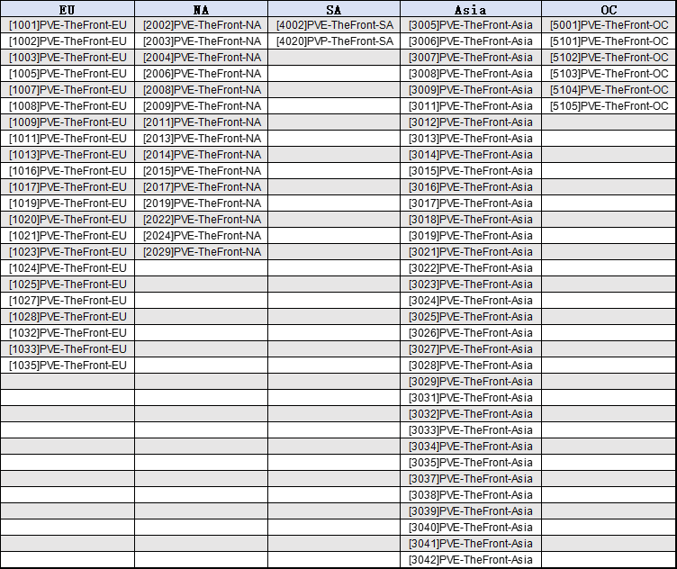 If you still have characters in the servers above, we suggest you move your personal belongings to Spacetime Warehouse to avoid any unnecessary loss. We are sorry about this server closure.News Liste The Front