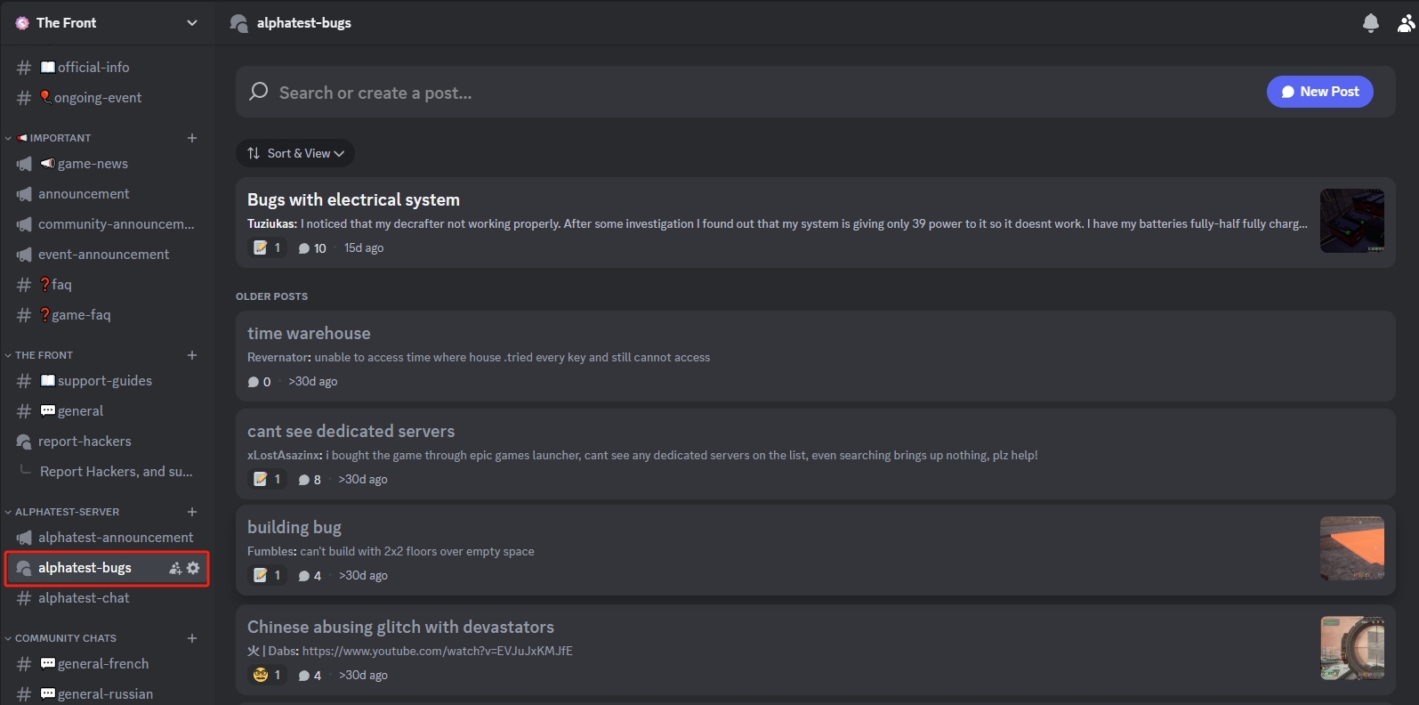 If you have discovered any new version related bugs, you can report it via our Discord server discord.gg/playthefront - Alphatest bugs Channel