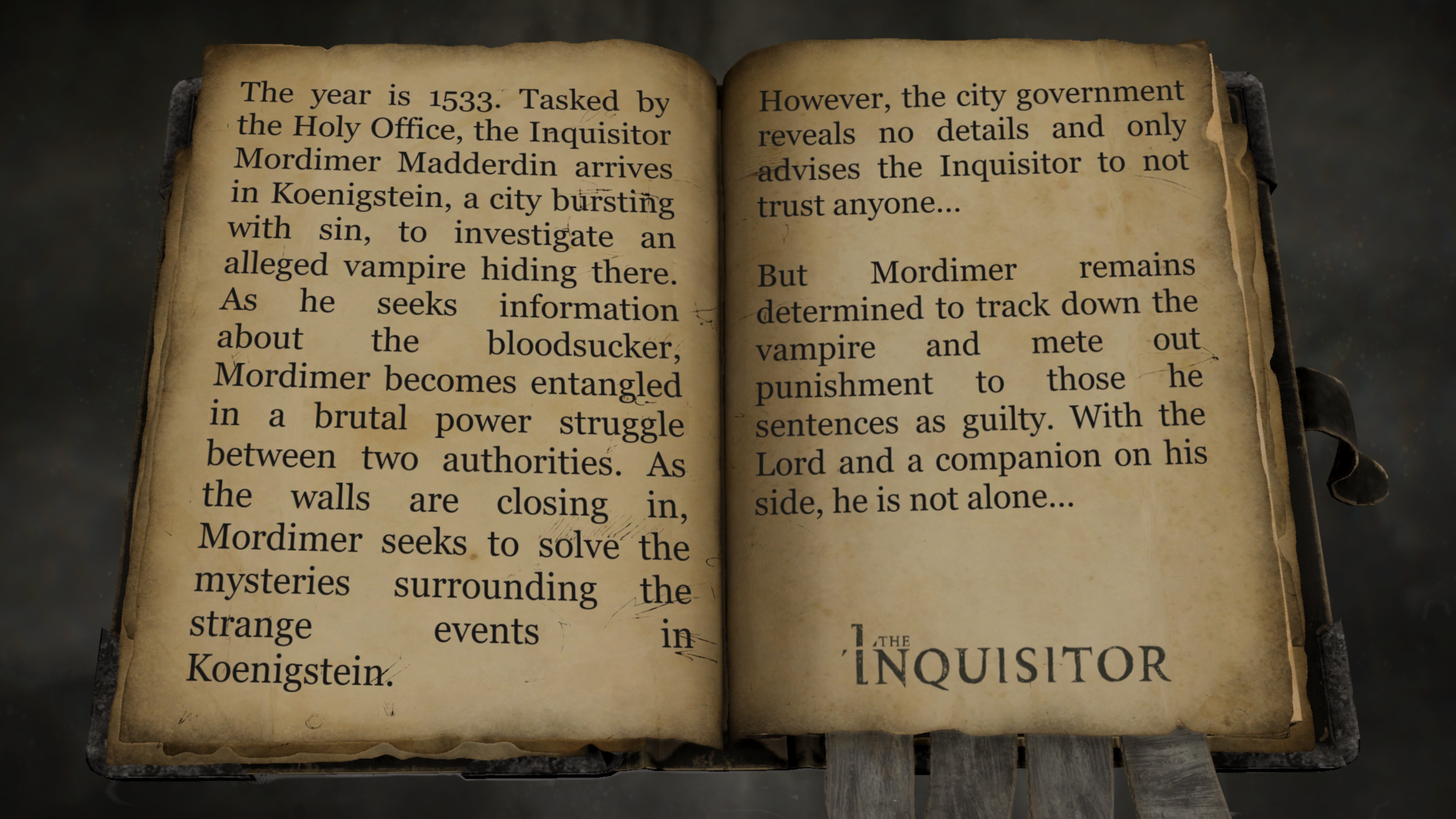 The year is 1533. Tasked by the Holy Office, the Inquisitor Mordimer Madderdin arrives in Koenigstein, a city bursting with sin, to investigate an alleged vampire hiding there.
