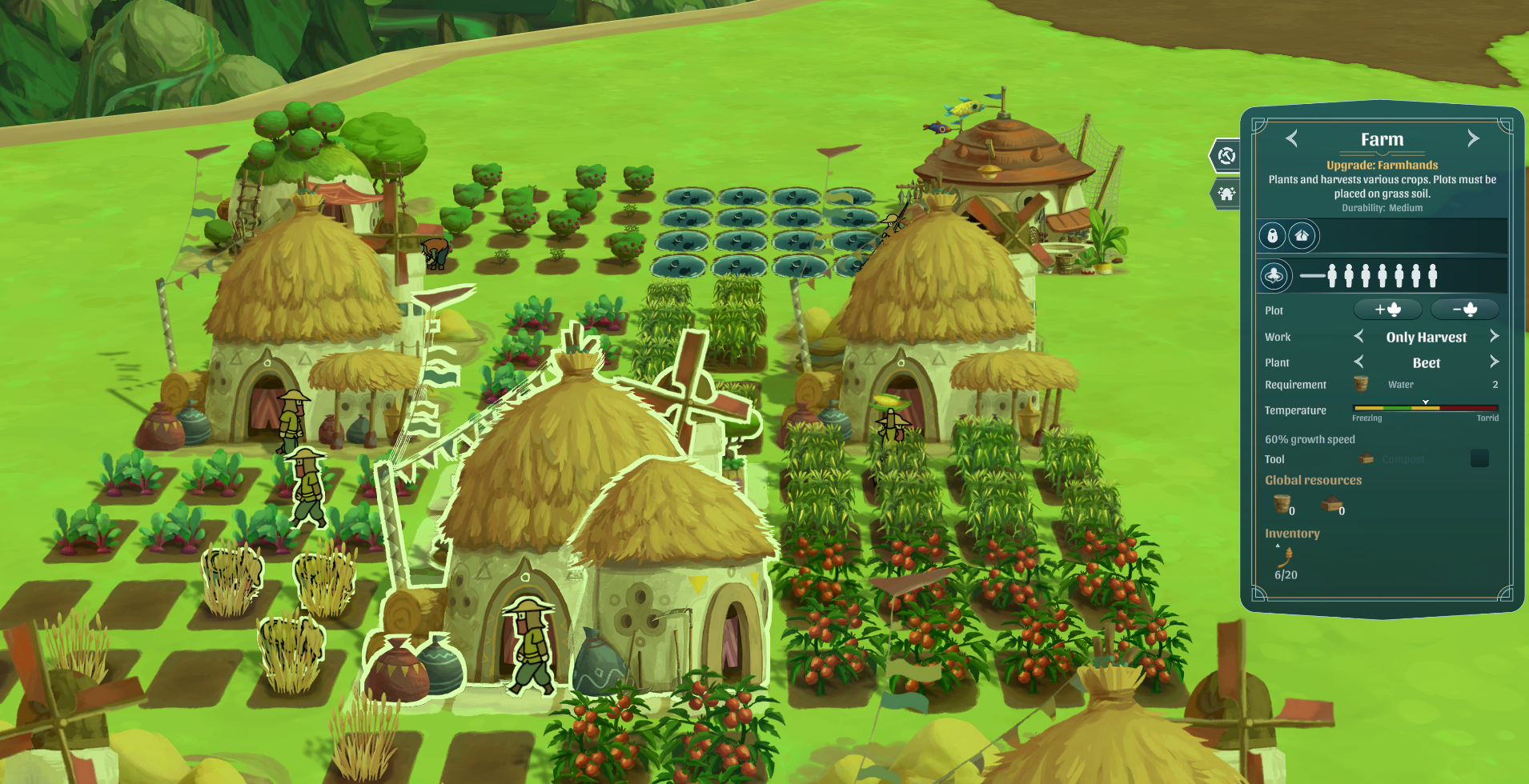 Farming got a big boost, too. Berry Gatherers can choose where to plant bushes, Farms can help out their neighbours with the harvest, and Aquafarm employees will reliably empty their storage when it’s full. You may also find that compost is a lot more useful now!