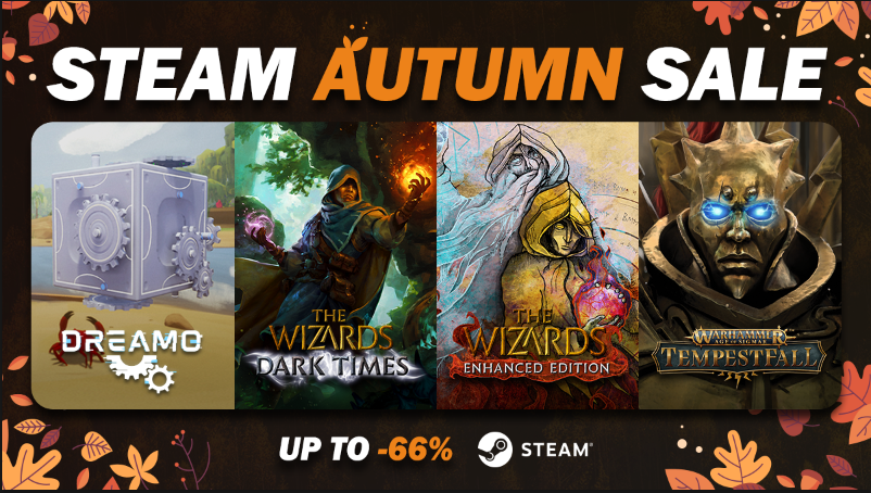 Rejoice, Wizards! The fall is here ???? And you know what that means, don't you? That's right! Awesome and truly amazing discounts! [b]Steam Autumn Sale[/b] is one of our favorite events of the year. Thanks to this exciting event we all have the unique opportunity to take advantage of some awesome discounts and play our favorite titles on long, cold evenings! Just like with The Wizards - Dark Times... ????♂ From this day, you can take on the role of a powerful Wizard, strike your enemies with use of Fire ????, Ice ????, and Storm⚡, and [b]save 45% of the original price.[/b] Sounds great? You bet it does! Do not hesitate, enter the magical world of Meliora, and go down in history as [b]the best wizard ever! [/b] ➡ [url=https://store.steampowered.com/app/1103860/The_Wizards__Dark_Times/][u][b]From now on you can get The Wizards - Dark Times with a -45% discount![/b][/u][/url] https://store.steampowered.com/app/1103860/The_Wizards__Dark_Times/ [hr][/hr]Our other games are also discounted... even up to -66%!