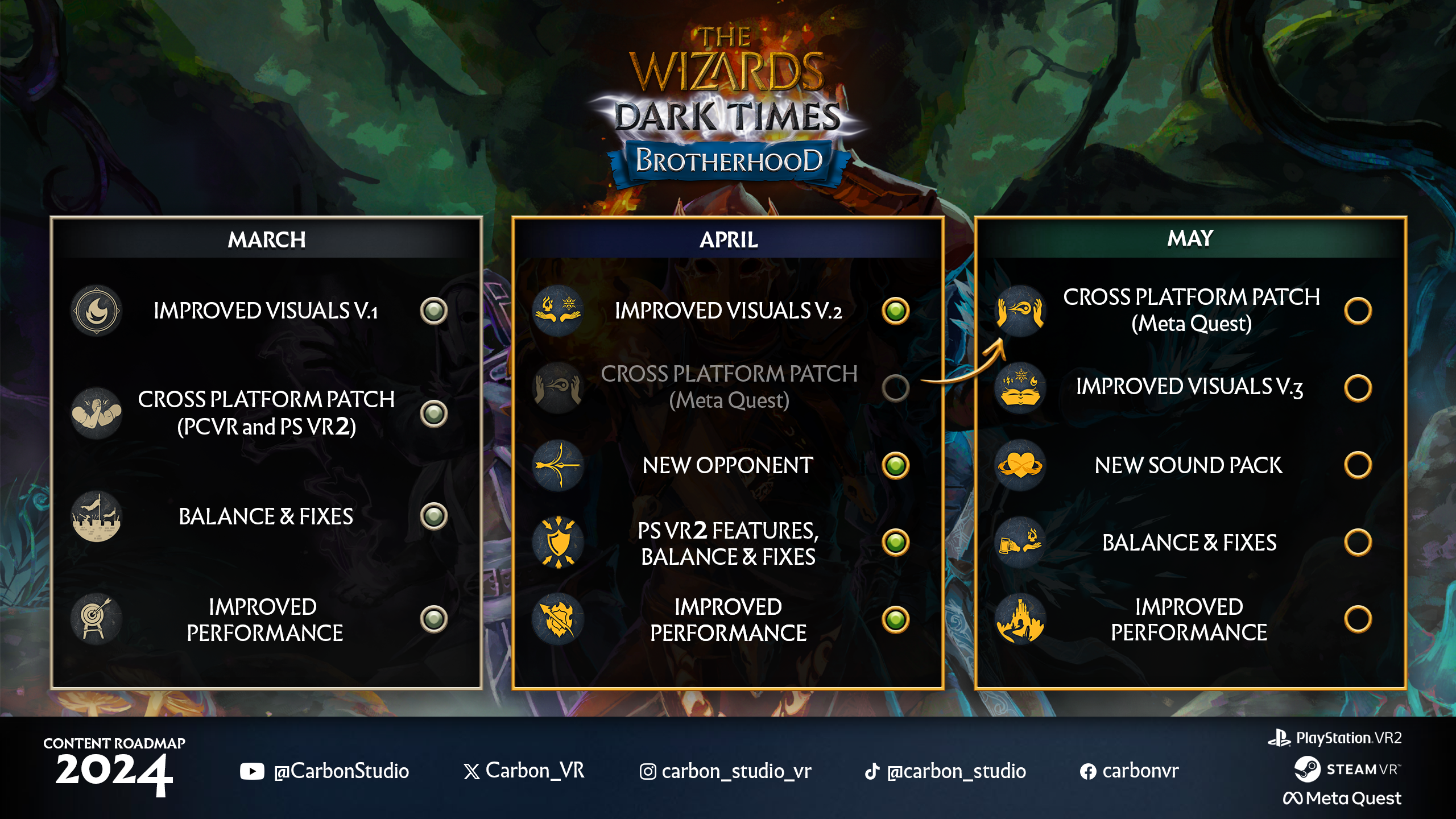 We hope you're all flourishing in your magical endeavors! We're thrilled to announce the rollout of our latest update, brimming with fixes and fresh content to enhance your mystical adventures. The roadmap is right on track, with one minor adjustment: the Meta Quest Crossplay feature will now debut in May. The crossplay is nearly working as it should be, but this shift ensures that when it arrives, it'll offer you the most enchanting experience possible. Thank you very much for your understanding on this one.