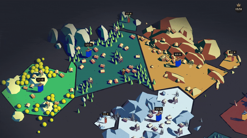 [b]The modes are meant as totally optional late game content[/b], for players that already have seen most of Thronefall and are eager for a fun twist on the original mechanics. We can see how the original layout made them seem much more important or even mandatory to beat before moving on to the next main level. [b]We now moved the bonus modes to separate “islands” next to each main level’s region and bundled them under one flag for each level. They unlock once you beat the main level of the next region. [/b] [b]The modes also no longer reward crowns for completing their quests. That means they are not needed to achieve any of the game’s achievements.[/b] We adjusted the existing achievements accordingly. The mini-modes grant stars for completing their quests, so you can still track your progress there if you want to.