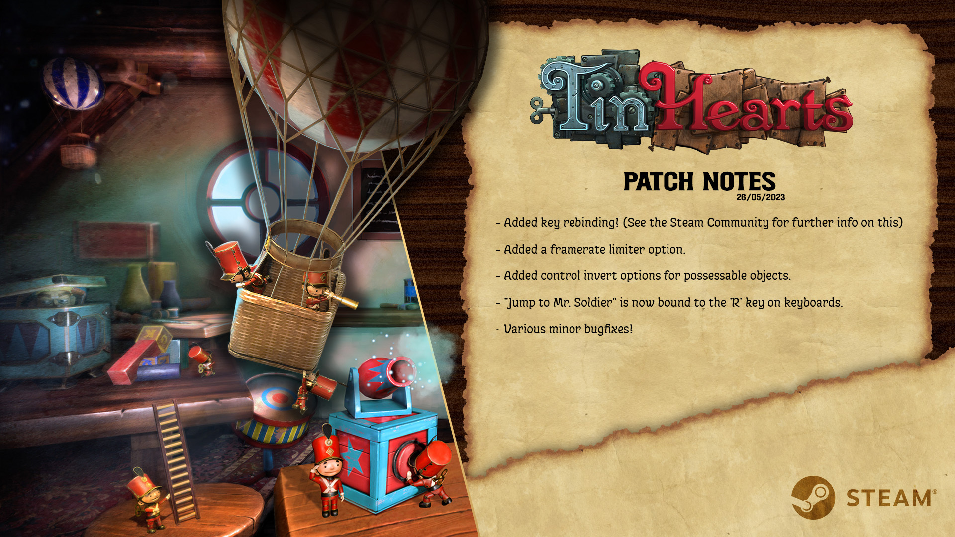We hope this helps you to enjoy Tin Hearts even more than ever, but we will continue to polish and make it run smoother than an entire troop of marching soldiers.