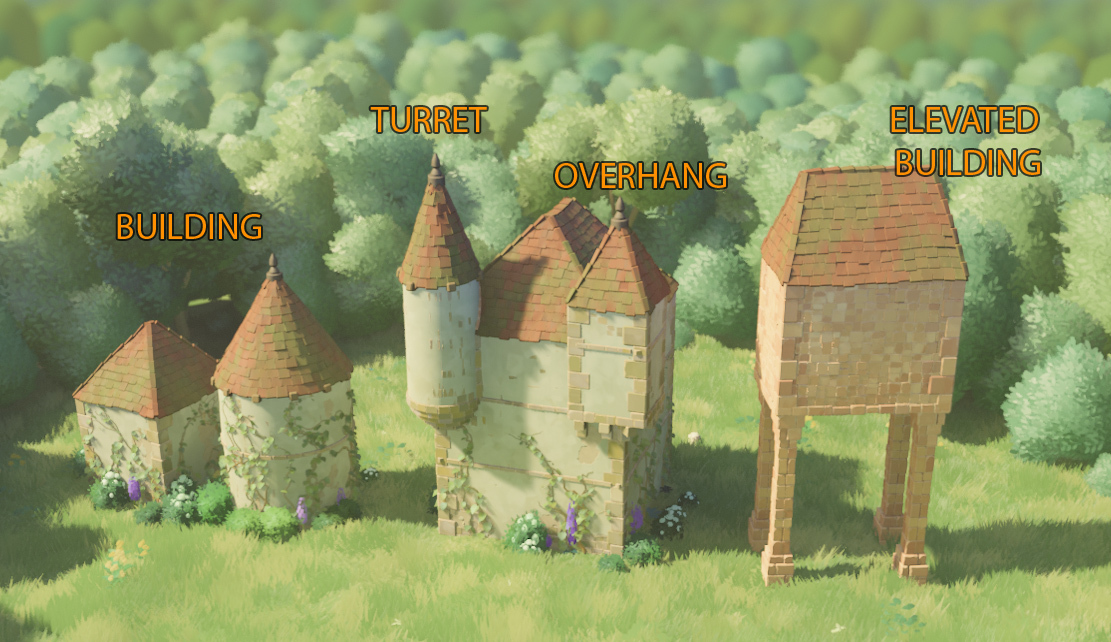In Tiny Glade, we want the elements to look cohesive with each other, so adding elevated buildings meant additionally designing a set of systems that would “glue” the pieces together. Thus, we automatically place brackets, supports and stone pillars, which will re-adapt if you move the elevated pieces.