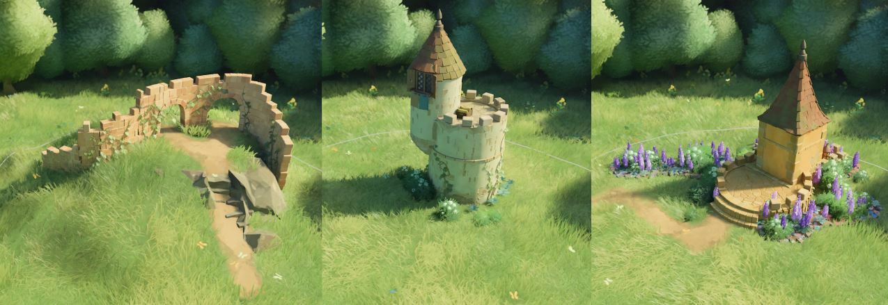 * Added a contextual hint about undo/redo. Now the first time you erase or bulldoze a wall, a small hint will pop-up telling you the key bindings (to make it go away simply press undo to complete the tutorial). * Changed slightly the starting build in Summer glade, and added two new starter build variants. Each acts as a collection of hints of what's possible inside the game. Now whenever you make a new glade, you will get one of these ???? (rather than always a wall with archways). Hopefully this will spark a chain of delightful discoveries, or serve as a starting point for a new build :3