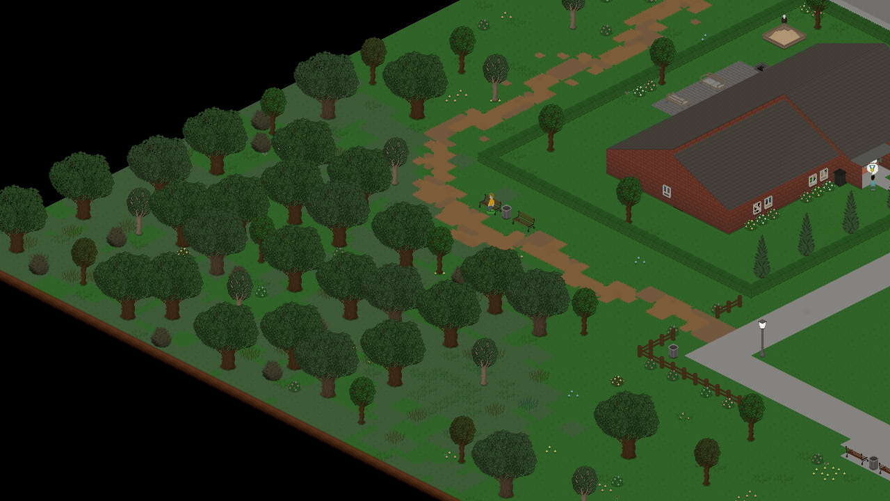 The forested area has received a dirt road inspired by the one in Lunar Grove, along with a few new paths to connect existing paths to it, and two new (currently unoccupied) residential lots!