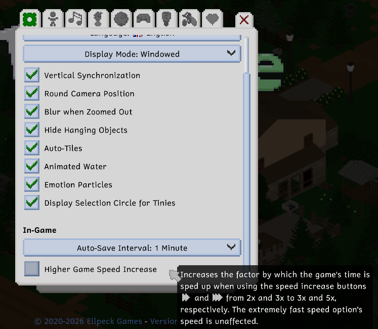 We recently held a small survey about the speed of the game's time, specifically how much time speeds up when using the fast or very fast speed buttons. As it turns out, a lot of people were feeling that the very fast speed didn't feel all that fast at all, and they commonly found themselves wishing that there was a higher speed to select. Enter the Higher Game Speed Increase option that you can now find in the General options tab, which allows you to permanently increase the speed of the fast and very fast speed buttons. Instead of doubling and tripling the game's speed, which they normally do, enabling the option will cause them to triple and quintuple the speed instead, respectively. That's five times the speed instead of three times the speed for the very fast button!
