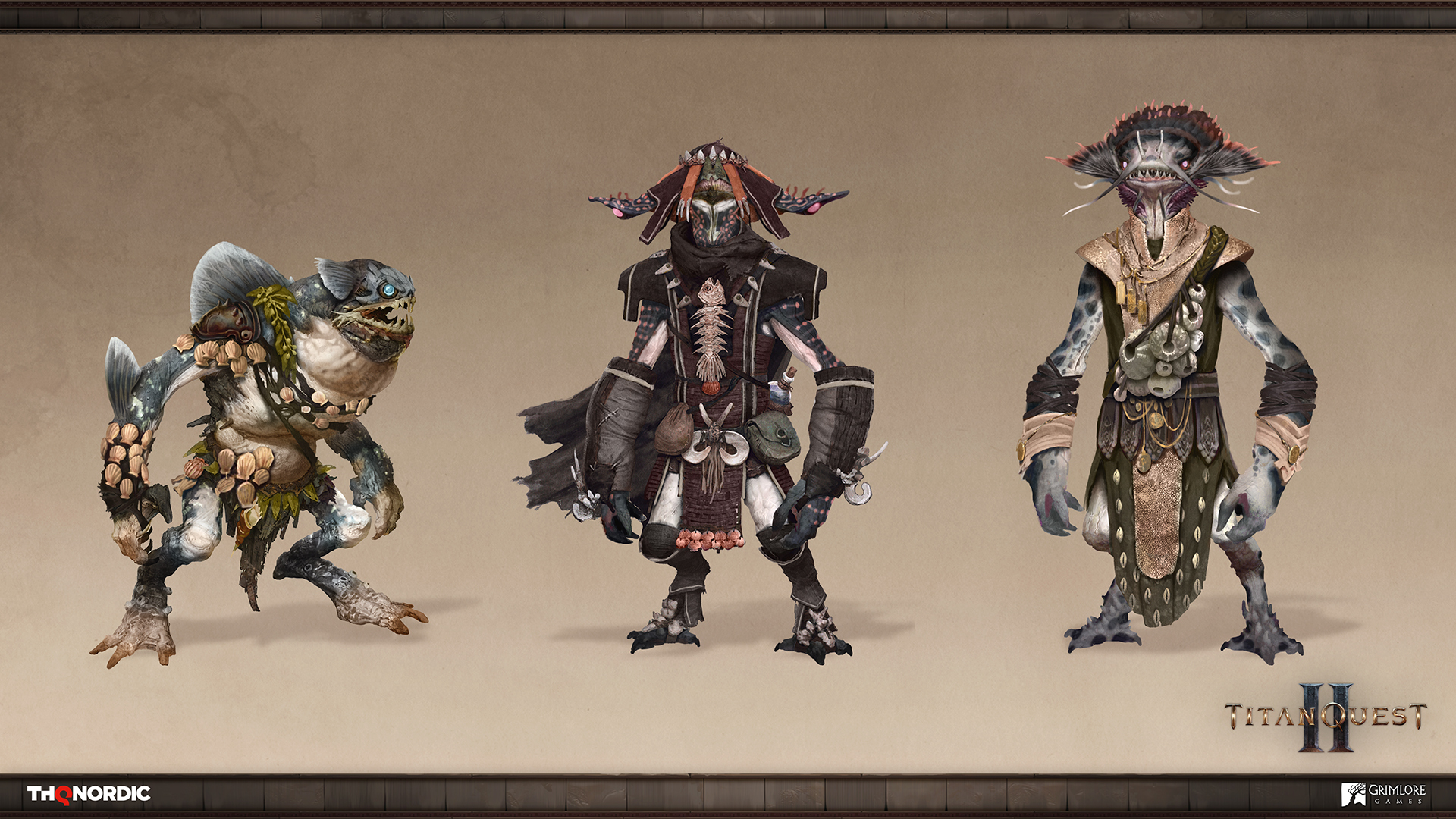 One of the early factions you will encounter is the Ichthians. You might remember seeing Ichthians in the original Titan Quest. They are one of the game’s original additions to Greek mythology, and for Titan Quest II we’ve expanded their lore to hint at how these monstrous fish-men came to be and to tie them into existing myth. The Ichthians are a monstrous hybrid of human and sea monster, with a vicious hatred of the god Glaukos and all the humans under his protection. Using their own brand of magic and tools and weapons improvised from their aquatic environment, the Ichthians are able to fight on land--though they do not like to stray far from the water.
