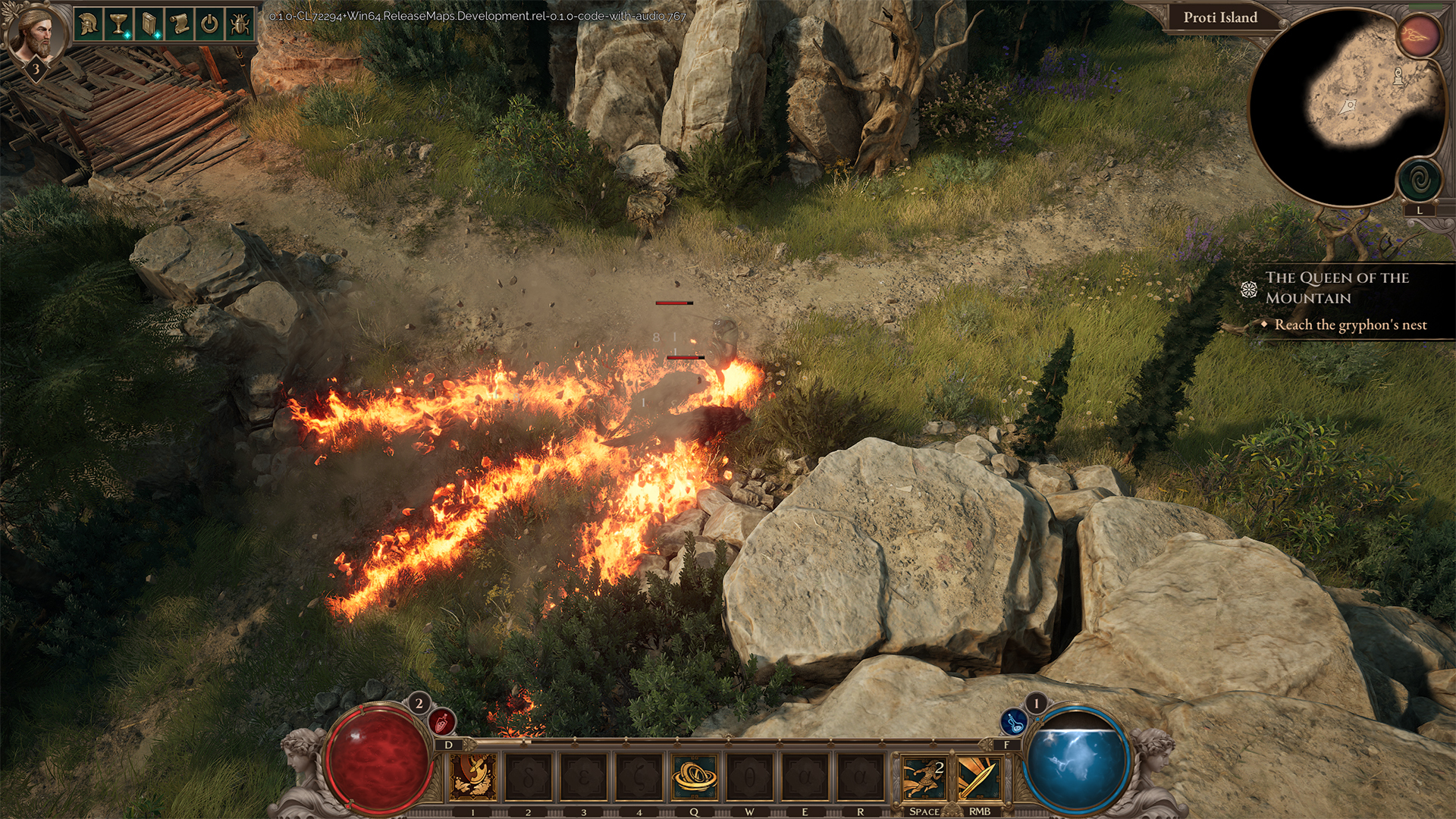 Fissure is a line AoE skill where you break the ground open in front of you, dealing strike damage. With the Lava Fissure modifier, the fissure gets filled with lava, now dealing fire damage as well, at the cost of extra energy.