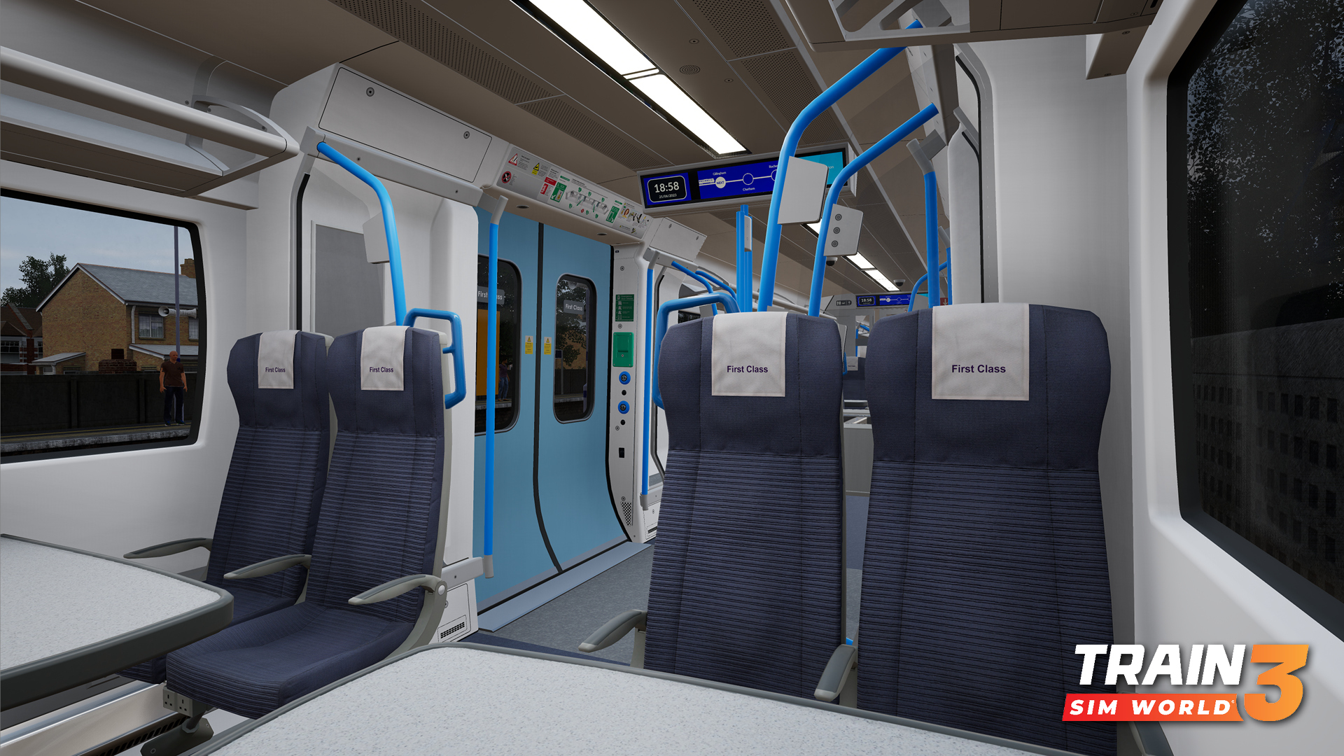For the passengers, the interior of each coach is represented in a way that reflects the variation to the seating plan found throughout the train and the bright, blue PIS screens display much of the information expected from the real-life trains.
