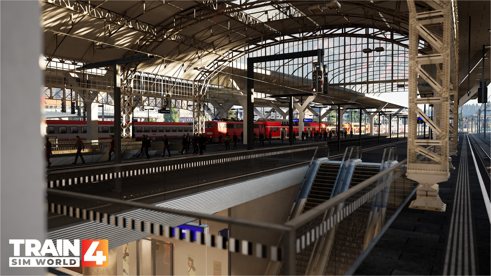Salzburg Hbf is populated with trains from Austrian operator ÖBB, as well as the visiting DB trains, making for a truly multi-national atmosphere. As with other Train Sim World 4 routes, there are some populated shops and cafes within the station, dioramas of workers discussing construction and in this route Add-on there are even working lifts for players to use as they get around.