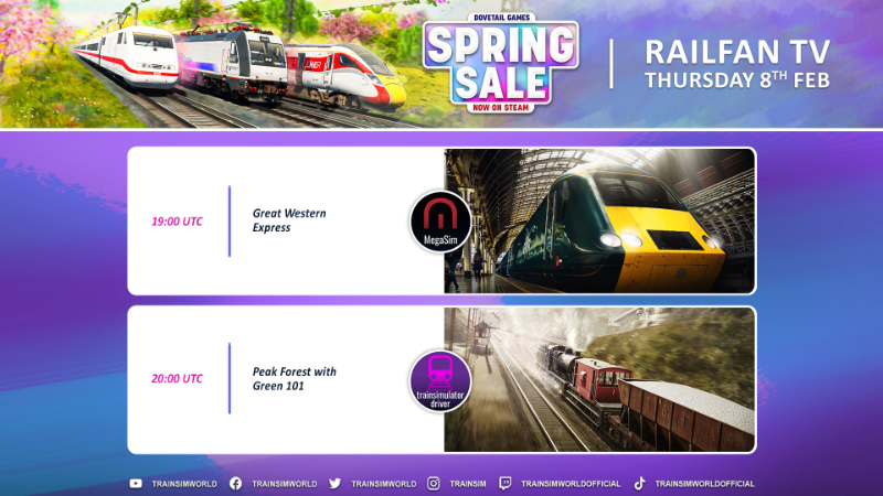 Tonight, we have showcases fromMegaSim on Great Western Express, followed by TrainSimulatorDriver on Peak Forest with a Green 101.