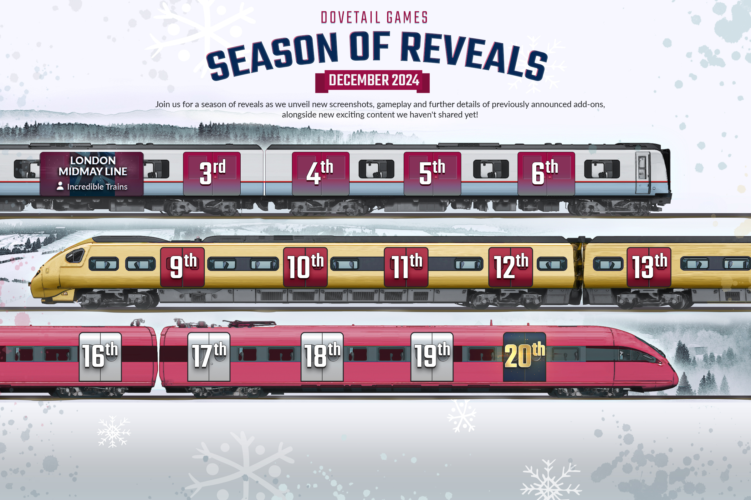 Our [url=https://live.dovetailgames.com/live/train-sim-world/articles/article/season-of-reveals-2024-week-1][b]website article[/b][/url] will be updated each time we share a new reveal this week, and will help keep everything together in one place - it will also feature exclusive announcements and sneak-peeks at announced TSW projects to conclude each week, so be sure to stay tuned. We'll then be back for specific Week 2 and Week 3 articles before we wrap up the year!