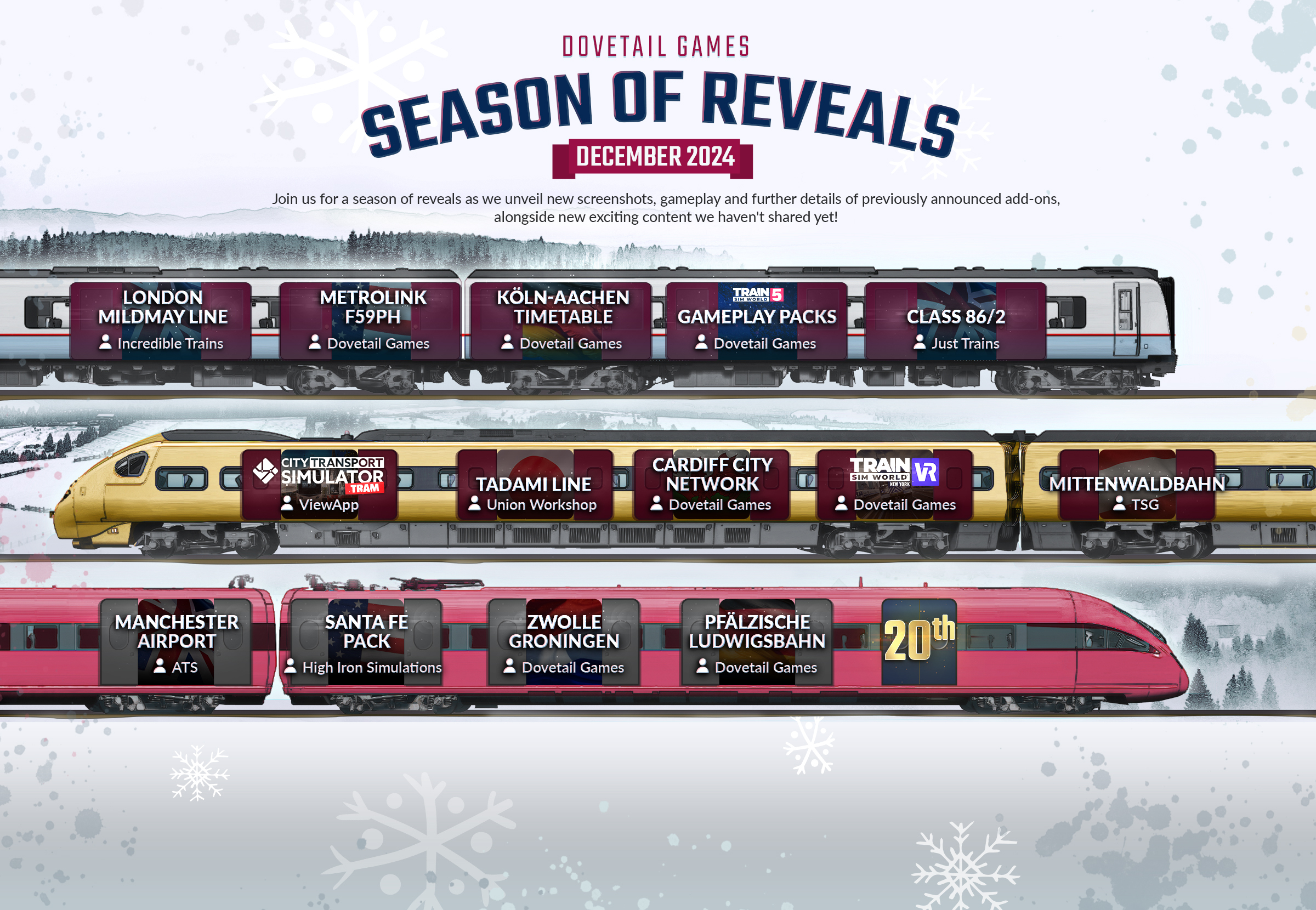 Find out more about Train Sim World 5 by following @trainsimworld on [b][url=https://twitter.com/trainsimworld]X/Twitter[/url][/b], [url=https://bsky.app/profile/trainsimworld.bsky.social][b]Bluesky[/b][/url], [b][url=https://www.instagram.com/trainsim/]Instagram[/url][/b], [b][url=https://www.facebook.com/trainsimworld]Facebook[/url][/b], [b][url=https://www.youtube.com/user/RailSimulatorDotCom]YouTube[/url][/b], [b][url=https://www.twitch.tv/trainsimworldofficial]Twitch[/url][/b], and [b][url=https://www.tiktok.com/@trainsimworldofficial]TikTok[/url][/b].