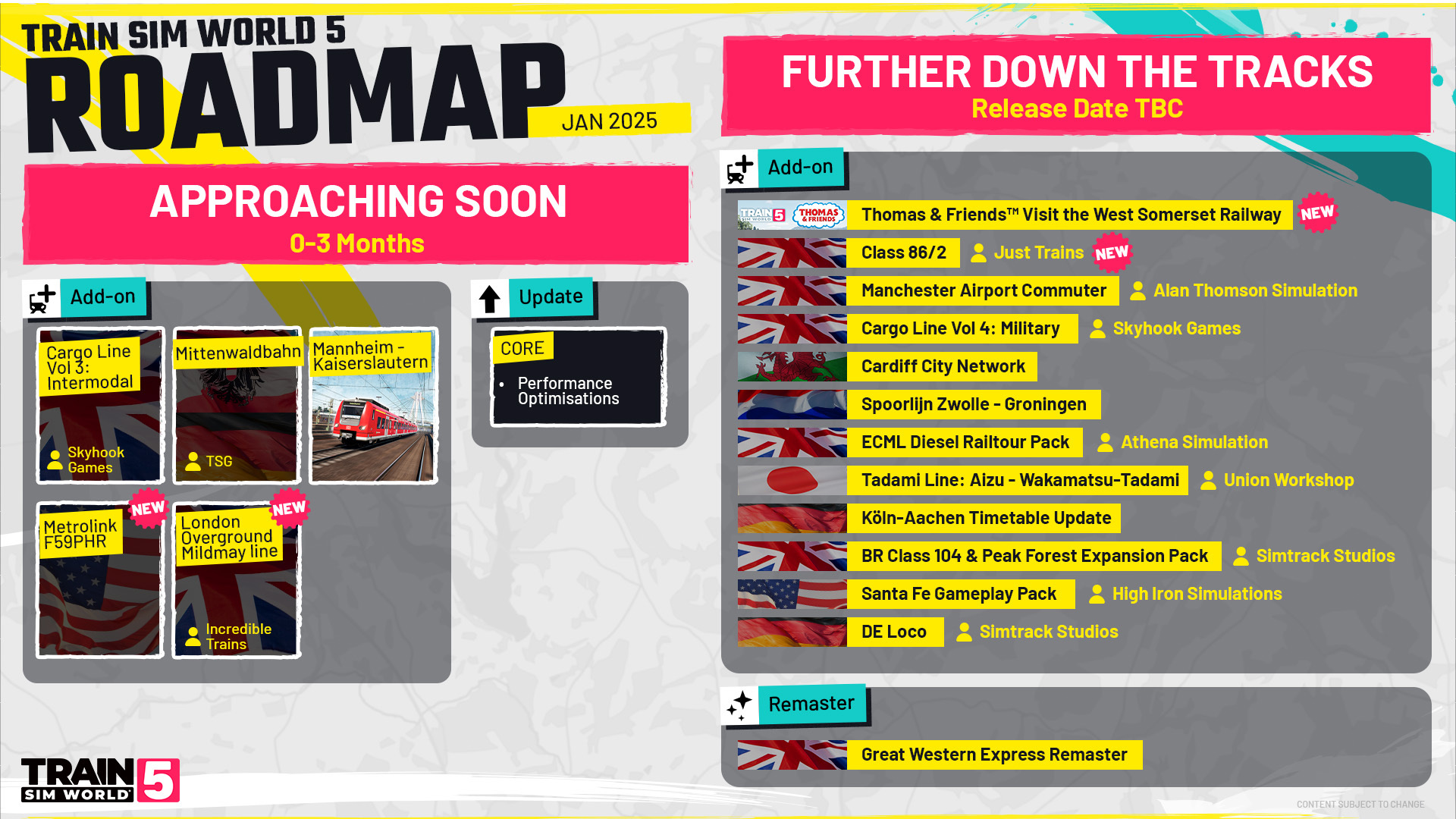View the full Season of Reveals summary on our [url=https://profile.dovetailgames.com/live/train-sim-world/articles/article/train-sim-world-5-roadmap-january-2025][b]website Roadmap article.[/b][/url]
