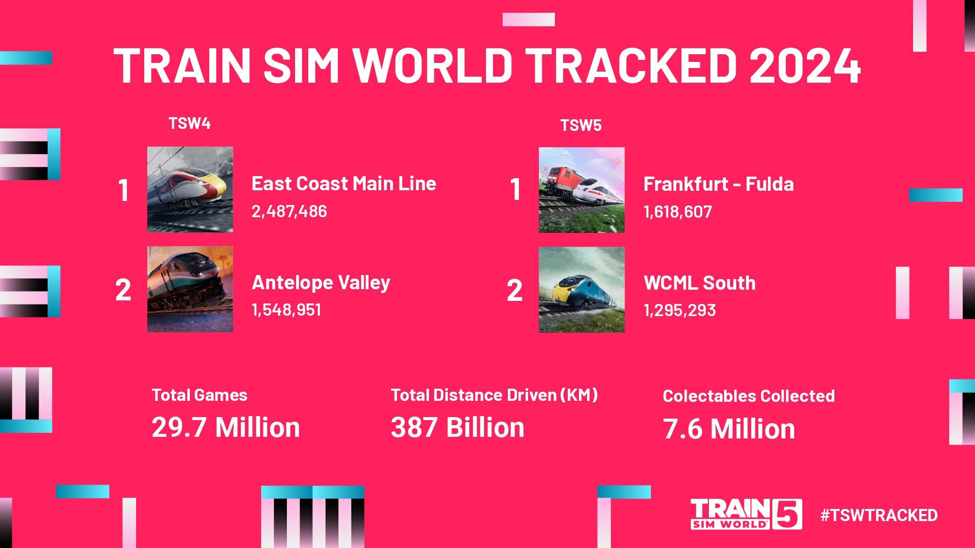 Over the holiday break, we also took time to celebrate all of the community in our yearly TSW Tracked summary. Just short of a staggering 30 million game sessions played, our top routes in TSW4 and TSW5 this year are the East Coast Main Line and Frankfurt-Fulda: Kinzigtalbahn!