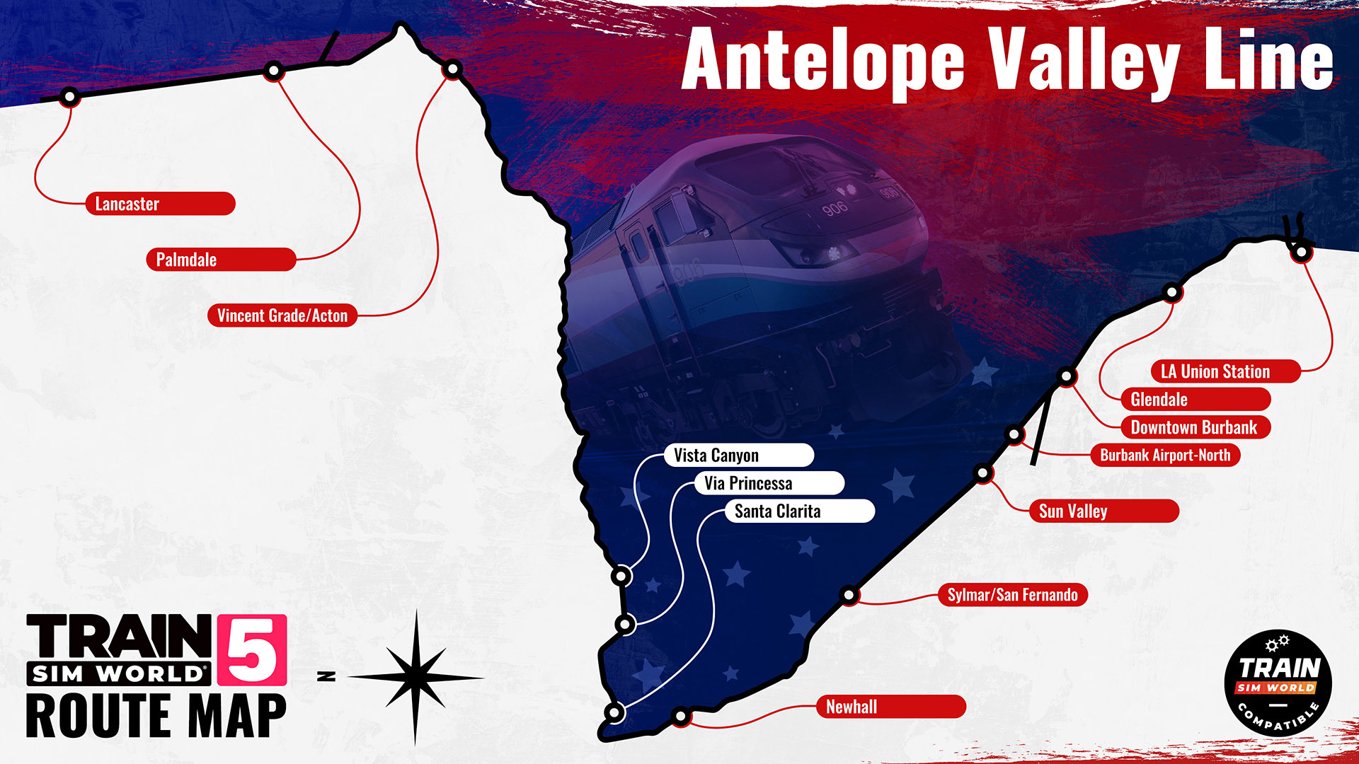 The Antelope Valley Line was part of Train Sim World 4: Standard Edition and is now available as a separate route Add-on for Train Sim World 5.
