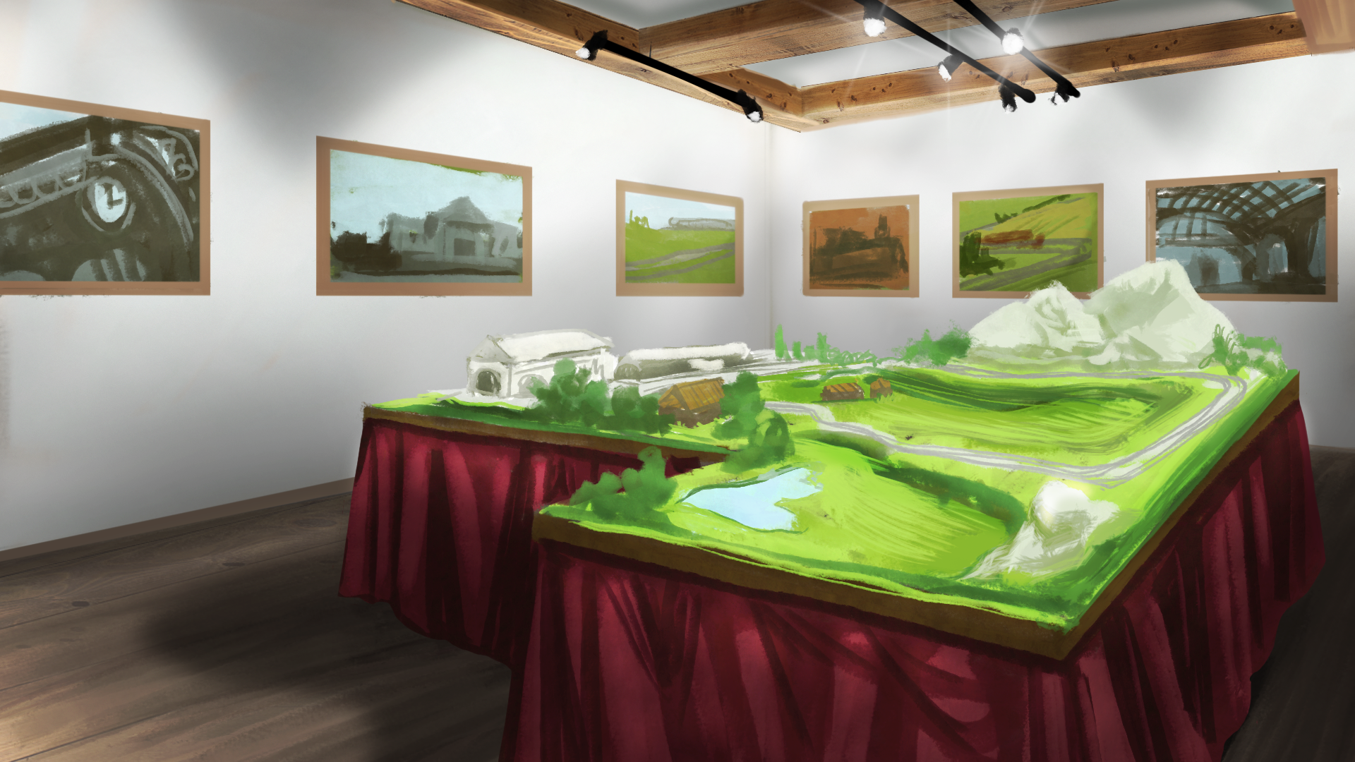 We’re working on a new location - the museum. Above, you can see a concept drawing and an early screenshot of this location under construction. The museum will be a place where players can showcase their models related to the game world’s history and interact with unique items and artifacts.