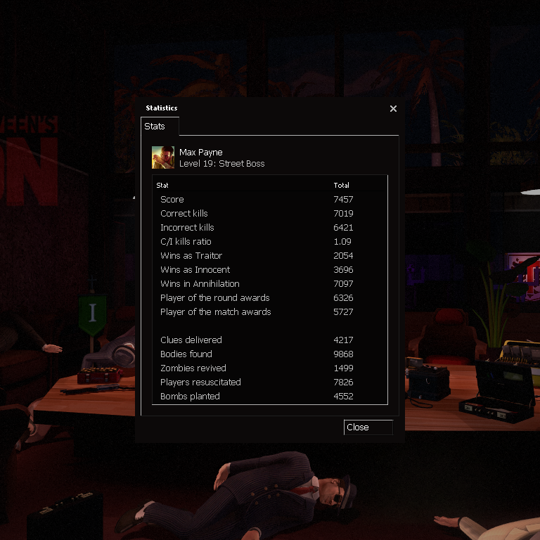 One more change we think you would like is Steam statistics! You are now able to track different parameters that you achieved throughout your Treason playtime: number of correct/incorrect kills, your total score, number of wins, clues delivered and more! You will also get a level assigned, based on your total score!
