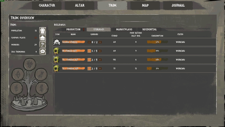 - Food quantity and other info in the Tribe Panel under the Storages tab refreshes correctly now.