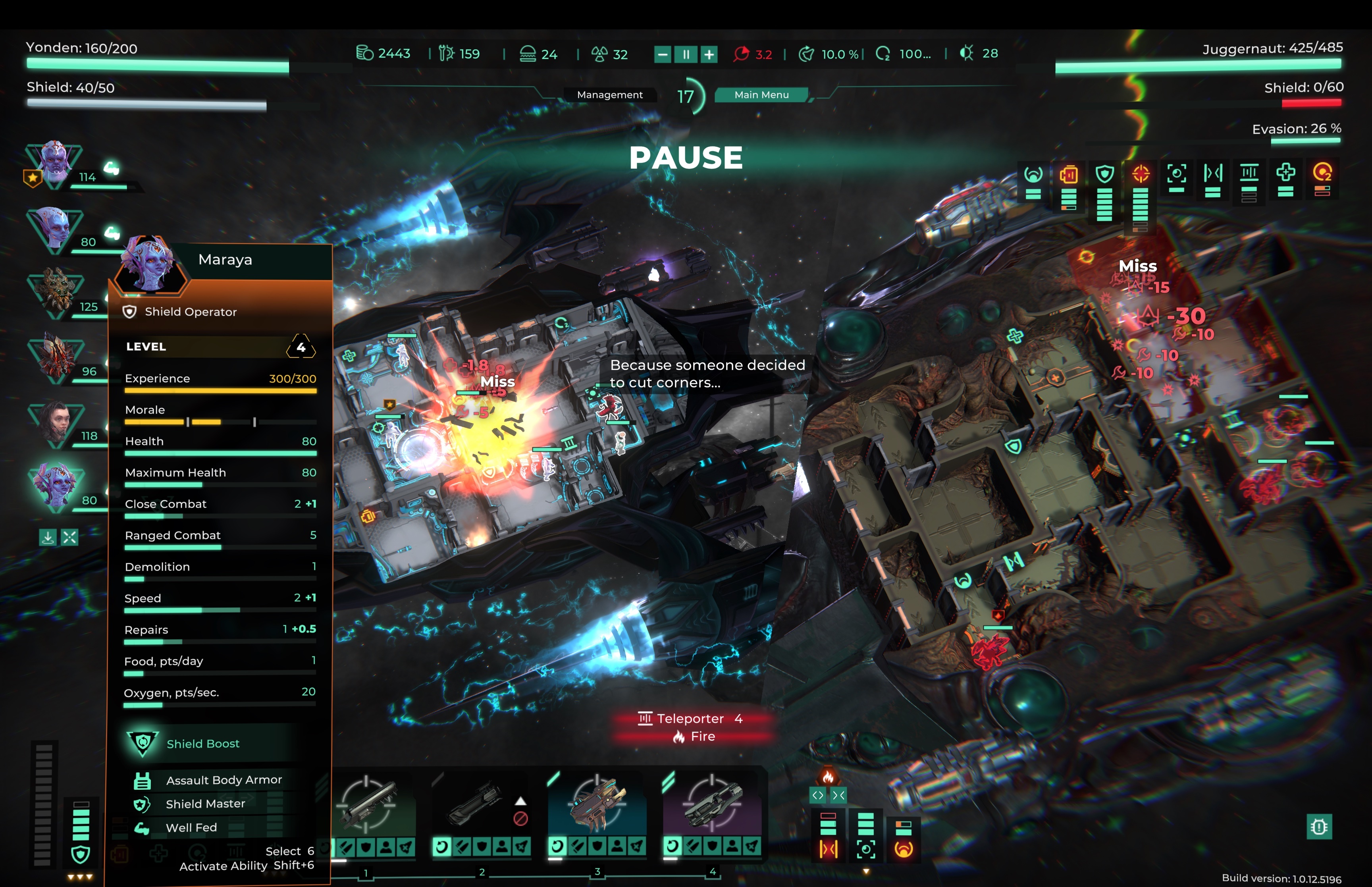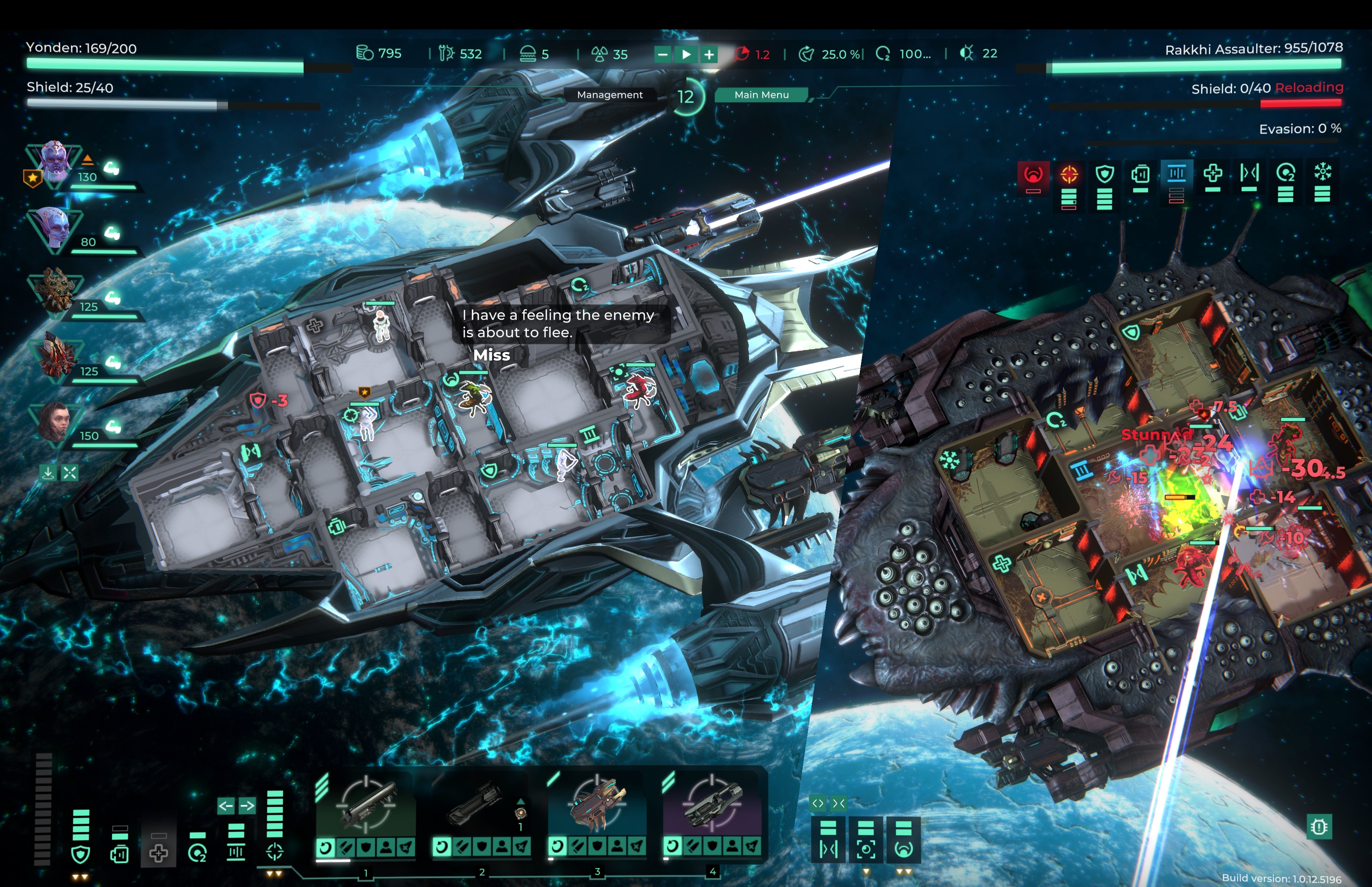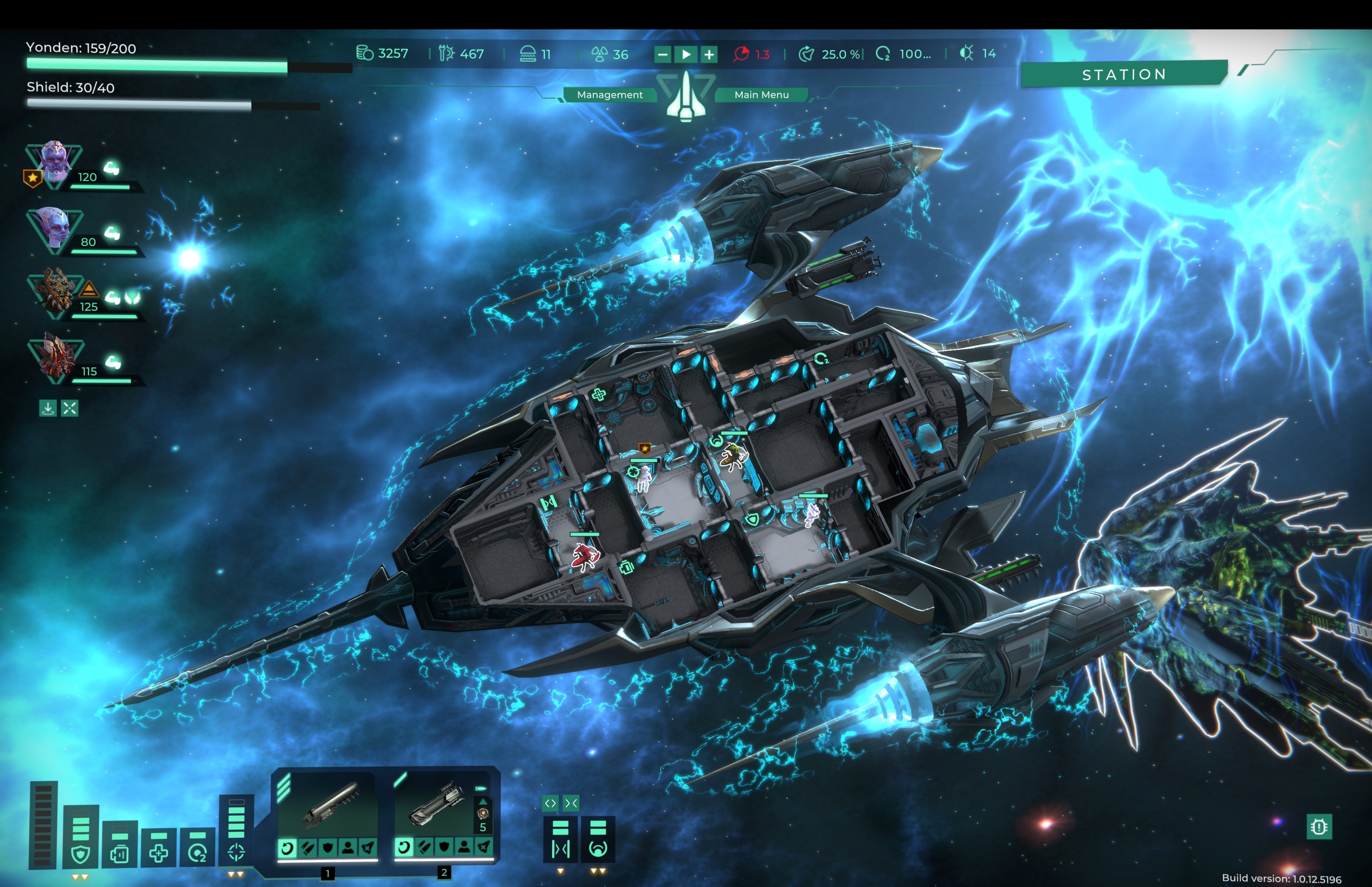 [b]Version 1.0.12.5196 [/b] Changes with the ‘????’ icon in front of them are changes or additions suggested by the community. As always, if you want to stay up to date on the game or give us feedback feel free to join the discord at ????[b][url=https://discord.gg/Sx3ZypU2VU]Sernur.tech Discord[/url][/b]. ???? Fixed errors when ejecting empty cryo chambers. ???? Fixed Error when crew returning to non-existent positions on enemy ships while aboard. ???? Resolved bugs when units were healing in the wrong medbay, operating a system located in a different section, or not operating a system in that section. ???? Fixed Errors preventing sending a unit to a section. ???? Resolved issues with dead units occupying space and blocking actions. ???? Fixed Error where it was impossible to close the reward window if units were added or removed from rewards. ???? Fixed Error causing a unit popup in the management screen to persist constantly, showing a popup of an empty unit, not the current one. ???? Fixed Error when 16:9 and 16:10 screen resolutions were missing from permissions settings. Now in such cases, the current screen resolution will be taken, and it cannot be changed in the settings. ???? Fixed crashes caused by quickly clicking “Start” in Sandbox mode. ???? Fixed Error when placing an engineer with the “Master-Engineer” ability into a cryo chamber, giving additional levels to the cryo chamber. ???? Fixed Error causing the cryo chamber to completely break if the “Master-Engineer” engineer was removed from the cryo chamber section. ???? Corrected targeting issues with enemy missile weapons. ???? Fixed Error when escaping from battle with the entire enemy team aboard the player’s ship. Now enemies Captains will not teleport themselves and cannot be picked up using the player’s teleporter. ???? Fixed bugs with quest progression. ???? Fixed Error in a quest where an enemy during the battle ceased to be an enemy, could not be targeted, and stopped shooting. ???? Description of the life support system corrected.????[b] What next? Modding support and Steam Workshop[/b]