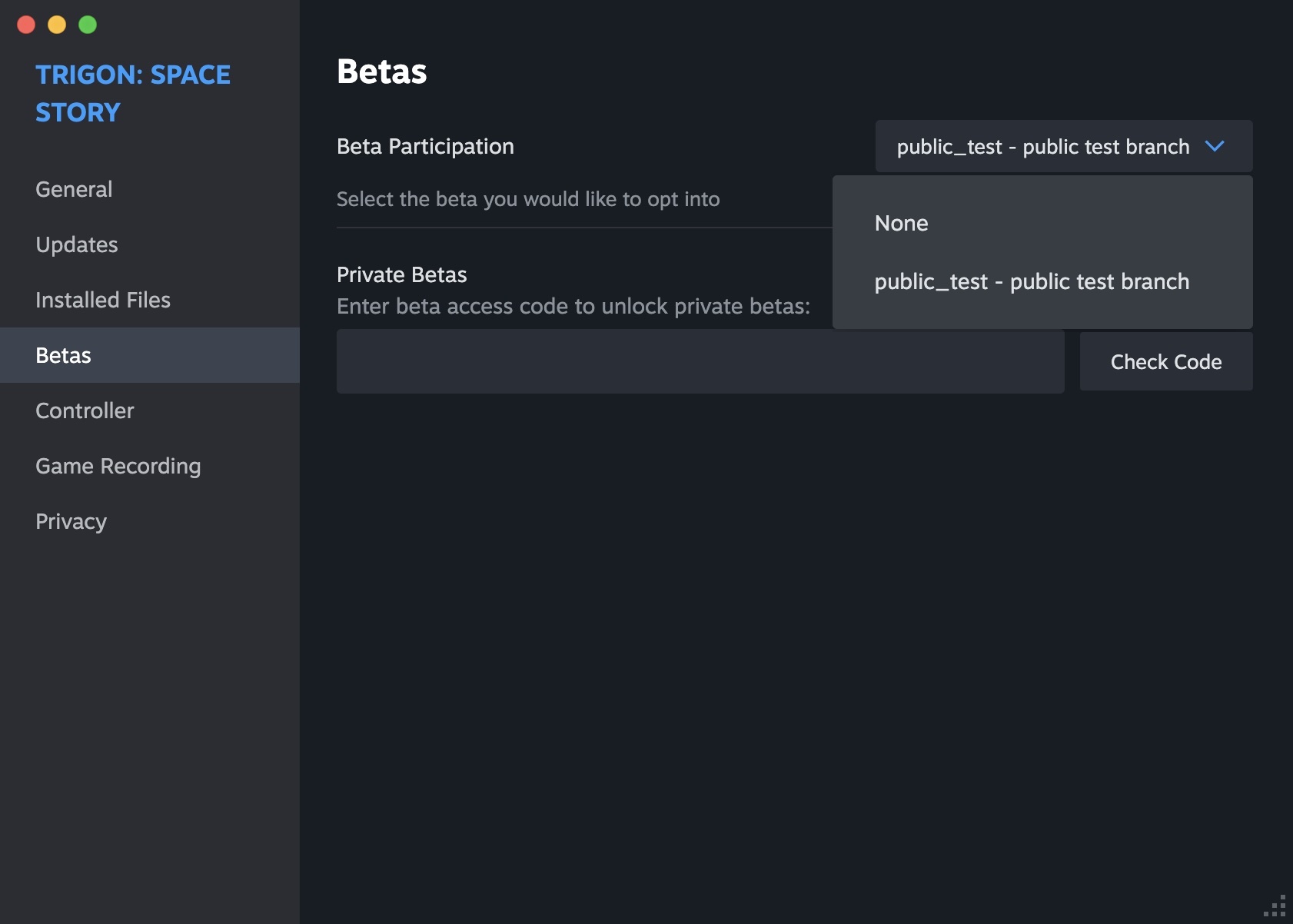 ???? Since the game support is all on us we’ve decided to share exclusive Early Access to upcoming updates on our Test Branch for everyone who are willing to provide a feedback. ???? We made the first playtest during this holiday season via our Discord and our Trigon Test Pilots volunteers. Many thanks for all of you who provided a feedback and helped with the current version we presenting here. ???? [b]Once the next update will be available on Public Test Branch on Steam we will notify you here and on ????[b][url=https://discord.gg/Sx3ZypU2VU]Sernur.tech Discord![/url][/b] [/b] [b]⚠️WARNING⚠️[/b] ⚠️ If you want to continue using your saves on the non-test version, make sure to back them up before playing on the Test Branch. Saves from newer version will not be compatible with current version. C:\Users\[..username..]\AppData\LocalLow\Sernur_Tech\Trigon_ Space Story - please make a copy of this folder to avoid losing your game progression. [b]Let's get started [/b] [b]Step 1. Right click on Trigon: Space Story in your Steam library.[/b] A window will pop up click on properties.