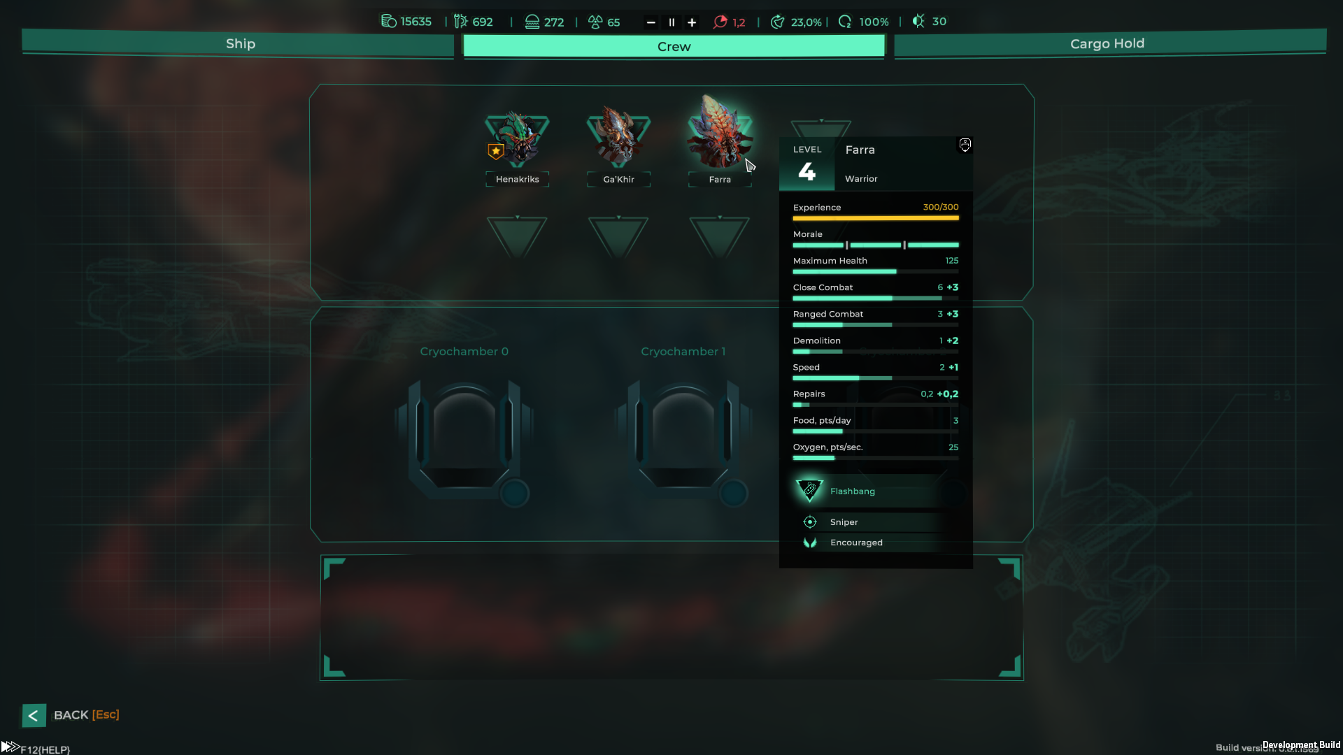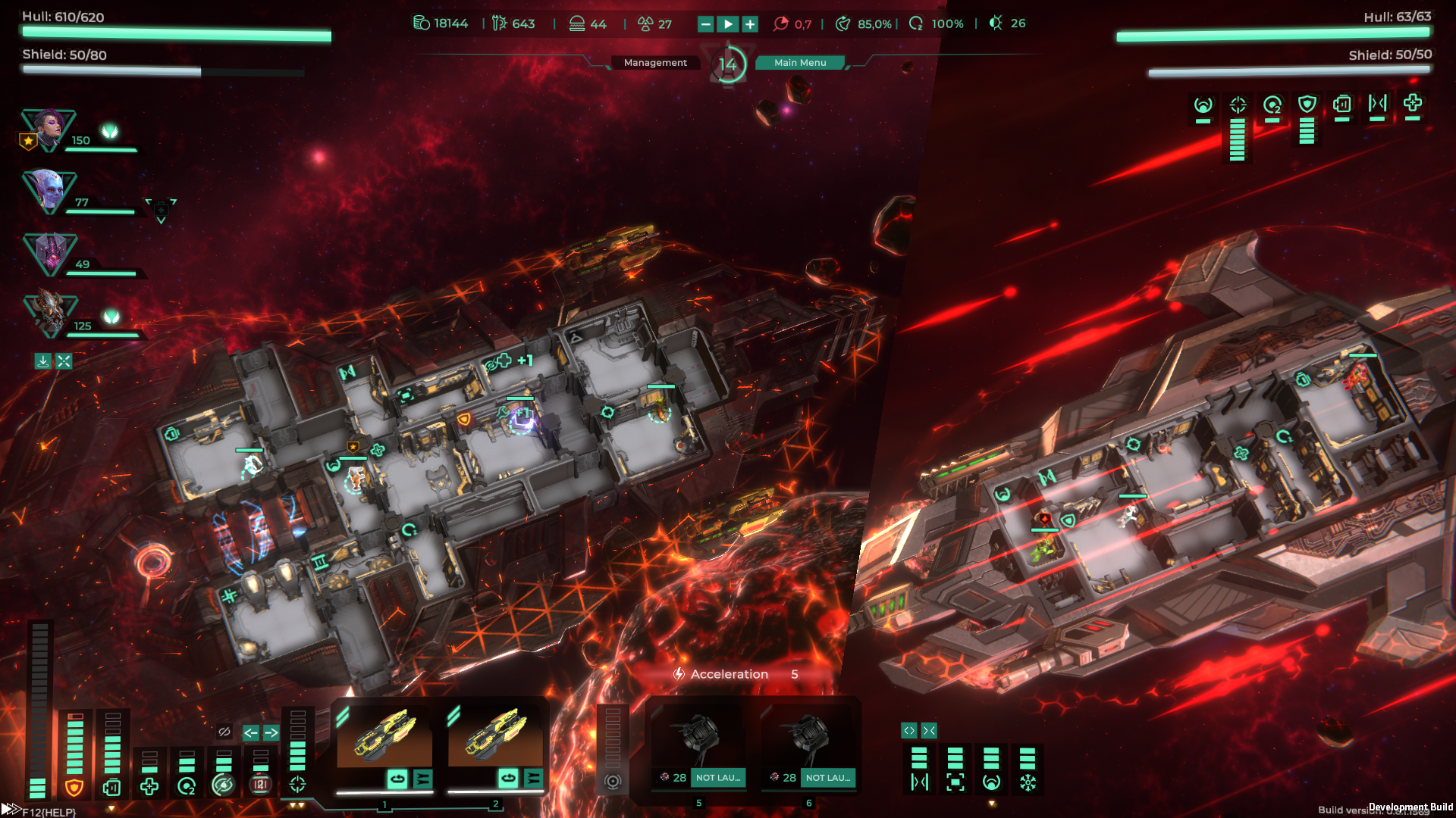 [b]Oxygen system on a spaceship is one of the most important systems.[/b] Units of different races consume different amounts of oxygen: Rakhis need more, Taerticons do not need it at all. [b]For a long time, we could not find motivation for the player to level it up.[/b] After all, even if the units in one compartment consume more than O2 receive, it is possible to open the floodgates and compensate for the shortage from neighboring compartments. ????[b]But then we realized that the oxygen system would also generate a small amount of food.[/b] And everything fell into place. [b]Now we call it Life Support System and also gives +2 / +4 / +6 food per day [/b]and allows you to autonomously maintain several crew members on the ship.????Drones launchers