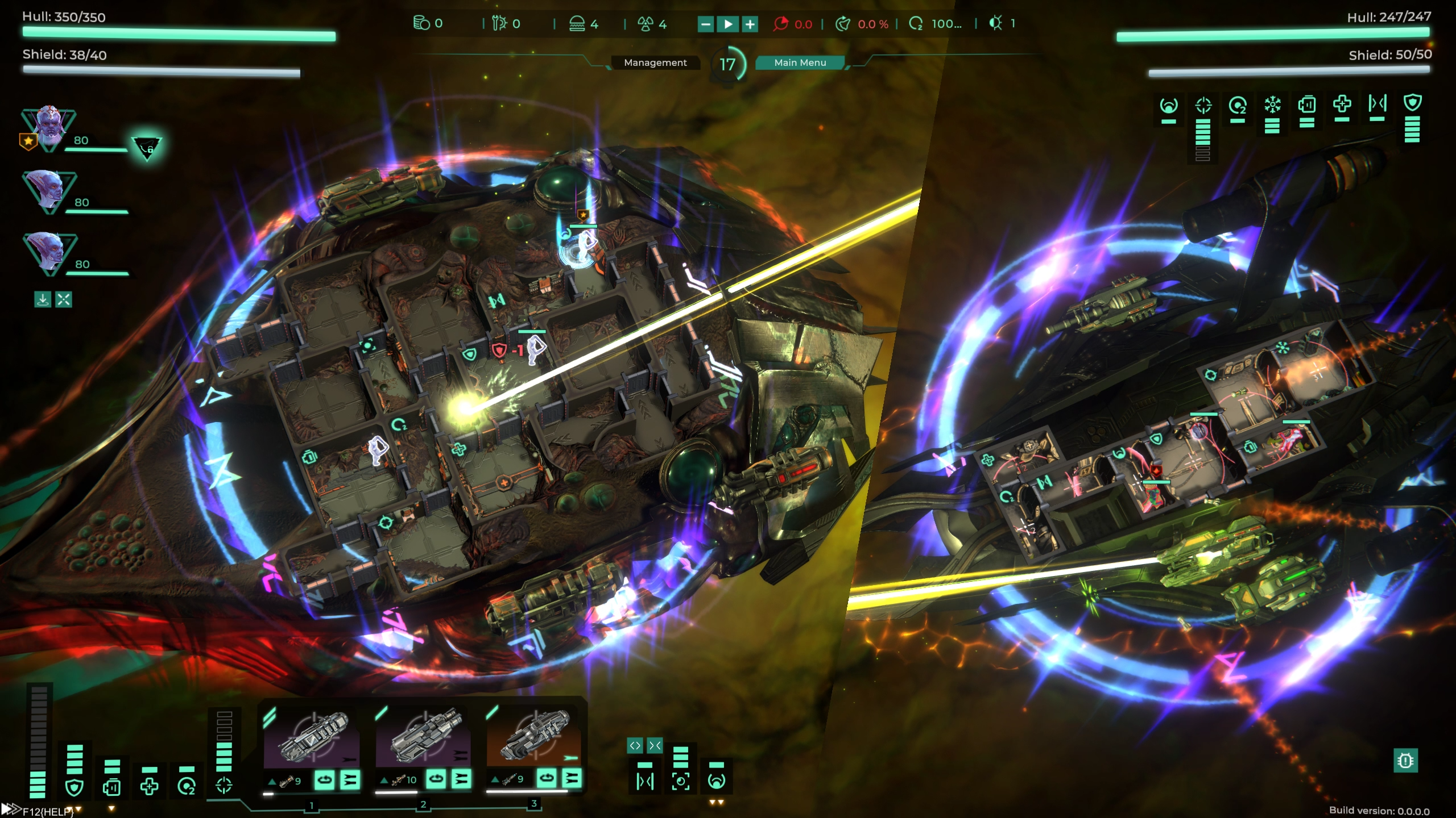 ???? [b]When the surrender of the enemy is refused by the player, the enemy interface disappears and he stops fighting.[/b] ???? [b]In a battle against two ships, after killing the first one, the game paused, which could not be unpaused.[/b] ???? [b]Blocker when loading a game session in which the player escaped the battle, leaving his unit on board the enemy.[/b] ???? [b]Sometimes projectile tails, when spawned in the enemy screen, are drawn for a second across all enemy space.[/b] ???? [b]When an enemy fires a laser, the beam from the gun comes out at an angle.[/b] ???? [b]When firing from a laser, the beam on the target ship path through the hull elements.[/b] ???? [b]When a player has several types of shells and the currently selected type runs out, they are not automatically loaded into the weapons.[/b]