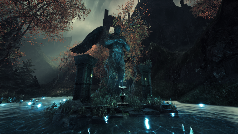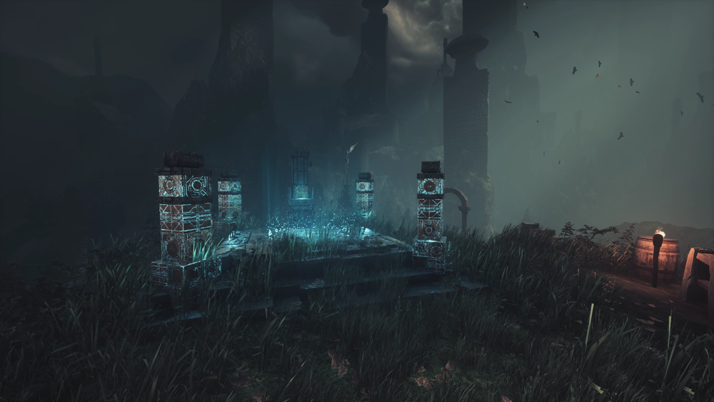 Angelic Portals serve as mystical gateways scattered throughout the main environment. These structures, consisting of a small stone platform with four towering pillars at each corner, allow for swift travel between distant locations. By interacting with an Angelic Portal, players can teleport to other portals, making these ancient relics a crucial tool for quick traversal across the dark and dangerous landscape.