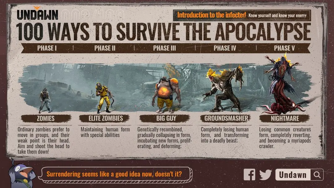 So let's take a look at the types of zombies in the world of Undawn!