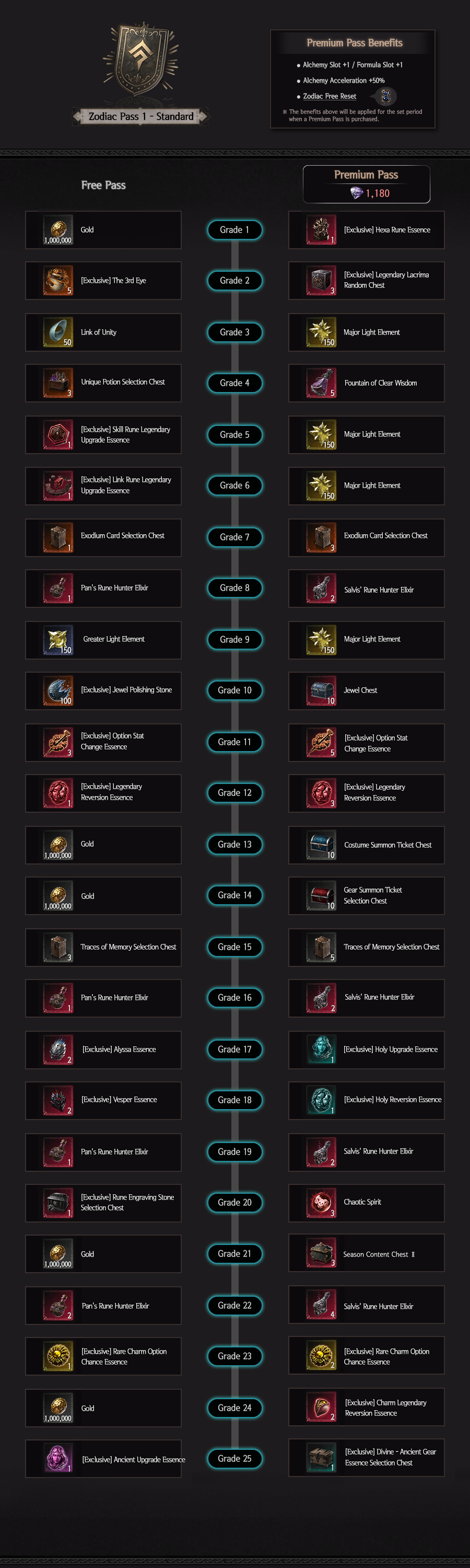 - Your purchased Premium Pass and its benefits will only be valid during the Zodiac Pass 1 period.