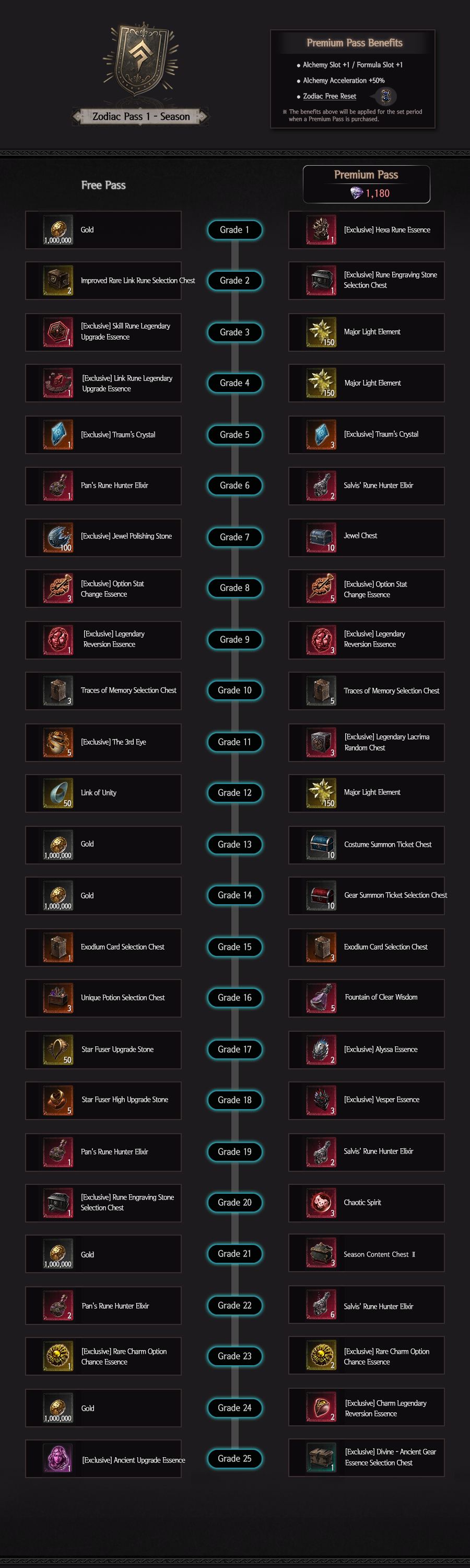 - Season Missions can only be cleared once during the Zodiac Pass period, and more Pass EXP can be obtained through them.
