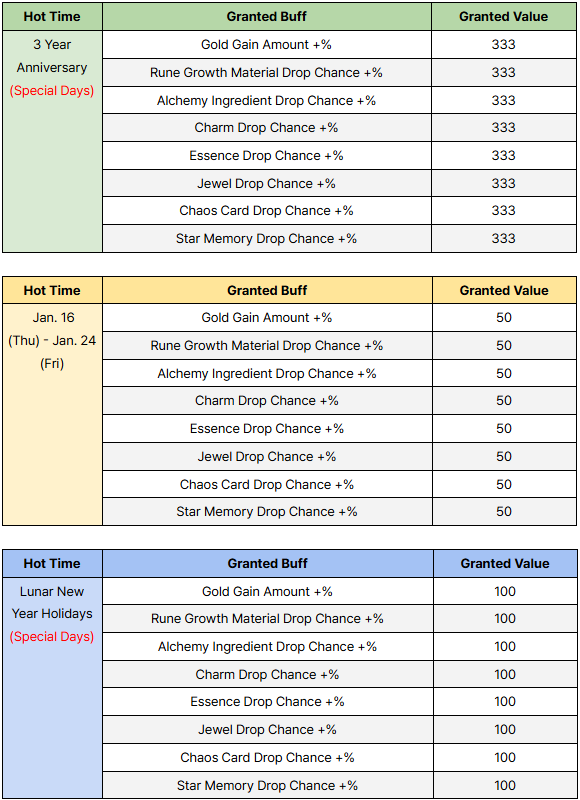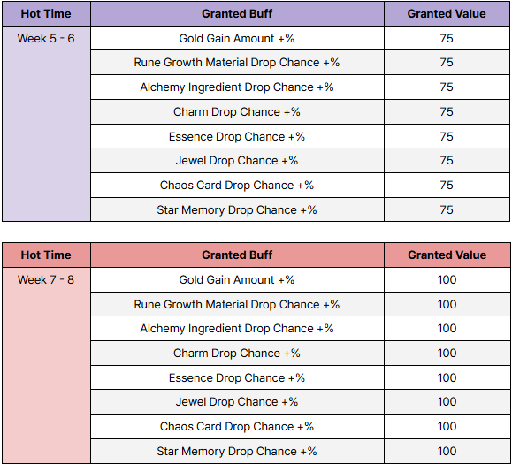 └ Hot Times during Special Days apply to both Standard Mode and Season Mode.