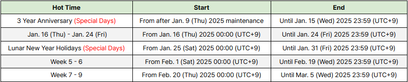 - After the Jan. 9 (Thu) 2025 maintenance - Mar. 5 (Wed) 2025, 23:59 (UTC+9)