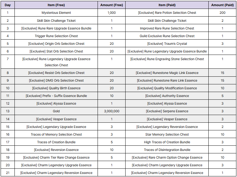 - Normal/Royal Attendance allows you to earn rewards for 21 days by attending.