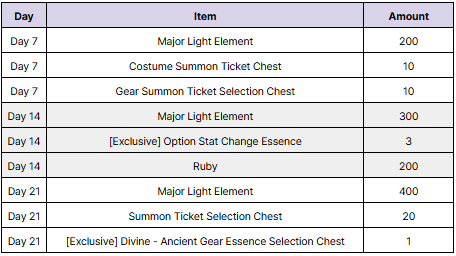 - Any Attendance rewards not claimed by the end of the Attendance will be deleted.
