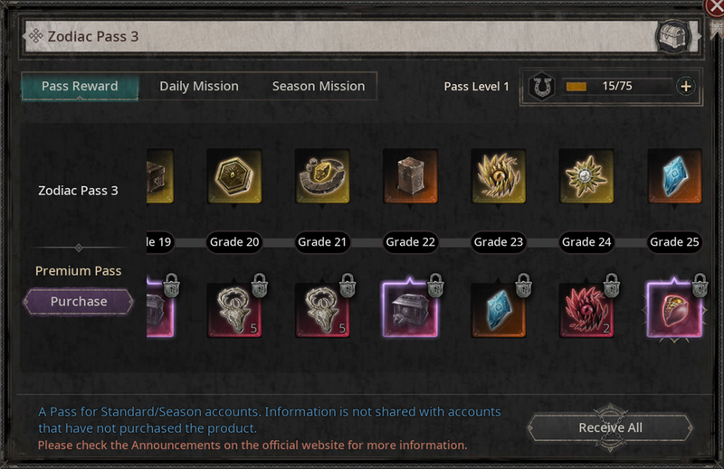 - You can purchase the Zodiac Pass with your account from Standard or Season Mode.