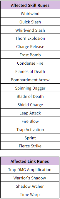 [b]◆ Balance Adjustments to Skill & Link Runes[/b]