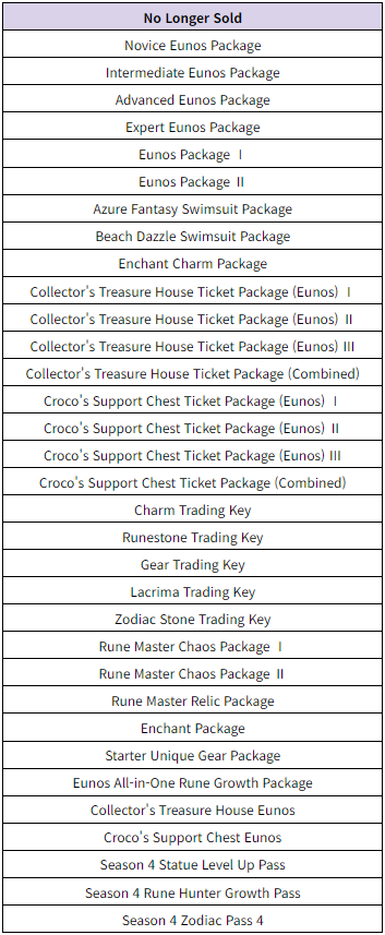 ✔ The relevant packages and products will only be sold until before the Season 5 update maintenance.