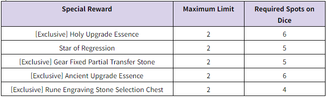 - Up to 5 Lucky Dice can be purchased per account every day through 'Paid Shop' > 'Consumable'.