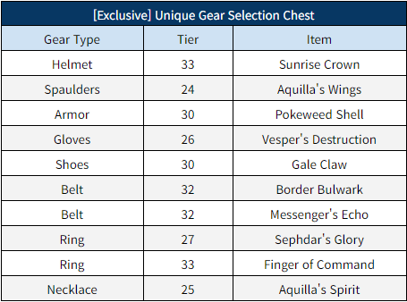 [b]■ [Exclusive] Unique Gear Selection Chest Contents[/b]