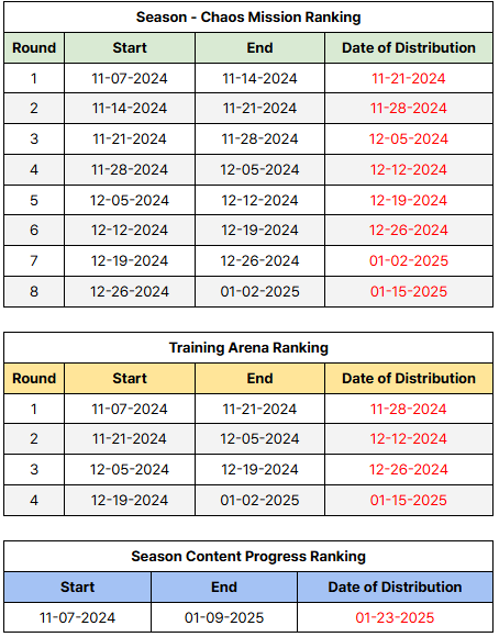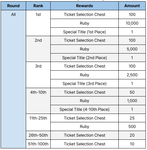 - When you are ranked on top of the Season Rankings (3 types) while playing in Season Re:Birth Mode during the event period, you will receive rewards based on your ranking after the event round and its calculation are over.