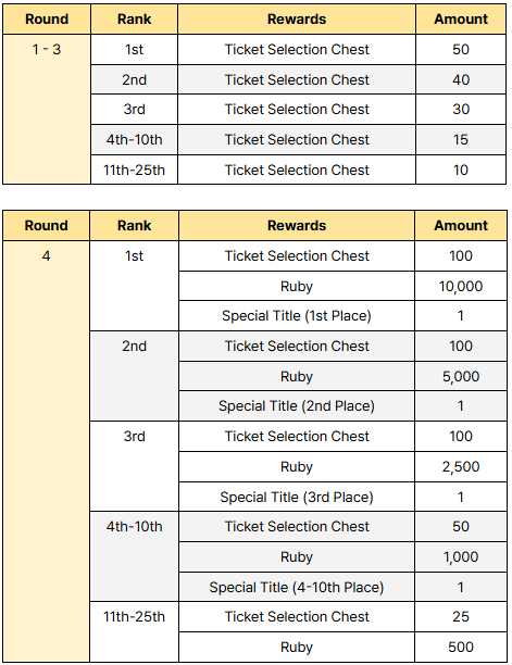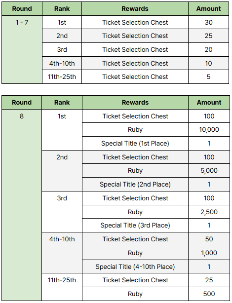 ※ Rewarded Rubies will be immediately given to your account and be added to the Rubies you own.