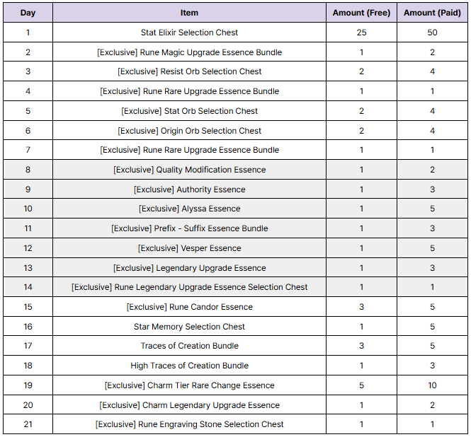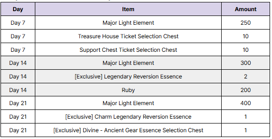 - Any Attendance rewards not claimed by the end of the Attendance will be deleted.