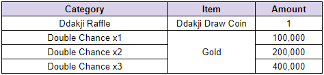 - Gold is used and rewards are doubled when users participate in the Ddakji Raffle with the 'Double Chance' button on.