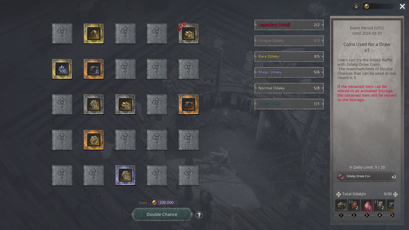 - 'Ddakji Draw Coins' are needed for the Ddakji Raffle.