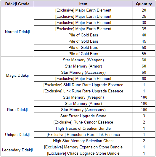 - Ddakjis are classified as Legendary, Unique, Rare, Magic, or Normal. There is a limited number of ddakjis that can be obtained each round.