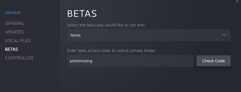 Navigate to Betas and, in the box under “Enter beta access code to unlock private betas”, write the password: